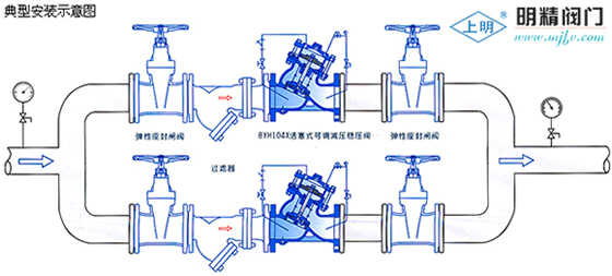 BYH104X活塞式可調式減壓穩壓閥是安裝于高層建筑給排水系統管道上,將進口壓力減至某一需要的出口壓力的特種閥門。該閥門依靠本身能量使出口壓力保持穩定在設定值,即出口壓力不因進口壓力及流量的變化而變化.并且閥門控制系統的進口處裝有一個自清潔濾網,利用流體特性,使比重較大、直徑較大的懸浮顆粒不會進入控制系統,確保系統循環暢通無阻,使閥門能可靠地運行。系統動作平穩、強度高、使用壽命長活塞式適用于大于450口徑的閥門。